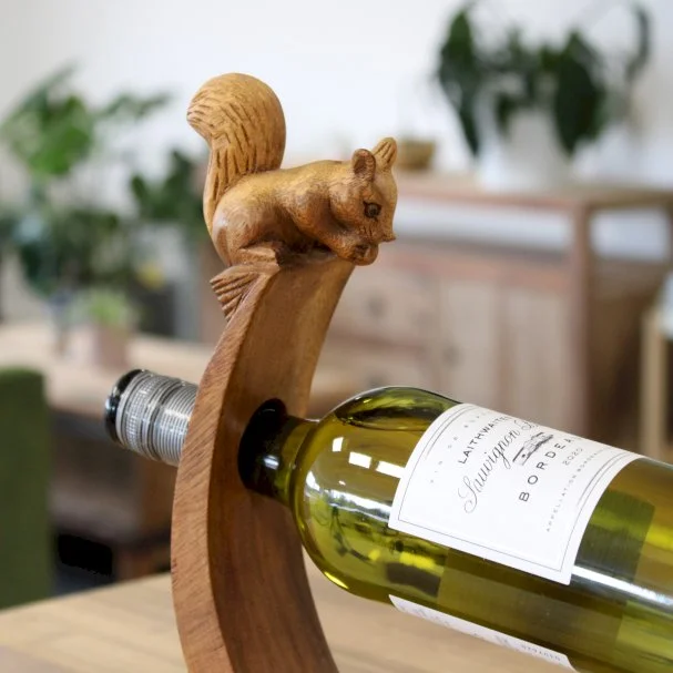 Take a look at our perfect wooden balancing wine bottle holders. As the whole range depicts different animals, each wine holder is a magic gift for any occasion. In natural wood finish they are perfect.
