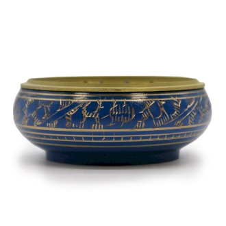 Unique Incense Jars in 7 beautiful colours, corresponding to the 7 chakras. Handmade in India, from brass, decorated with golden carved patterns. Often used for meditation or during the cleansing rituals to remove negative energy from the surrounding space.
