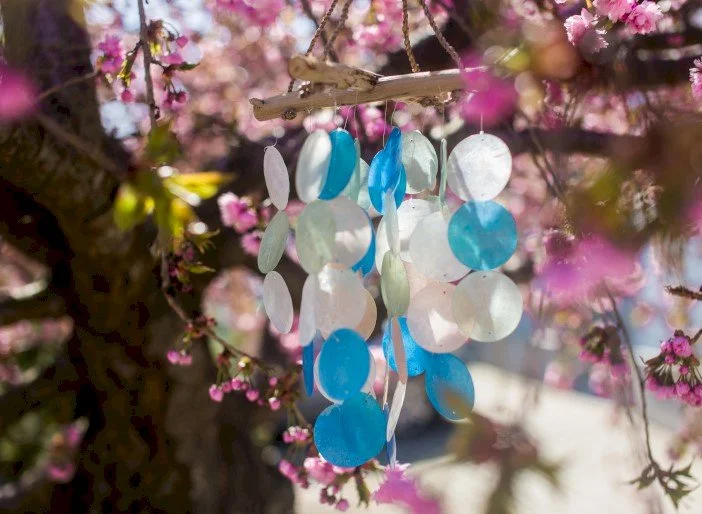Hang this unique decorative piece indoors or, for a better effect, on the porch or in the garden. They clink together nicely in the breeze, the sound will bring tranquillity to any space.