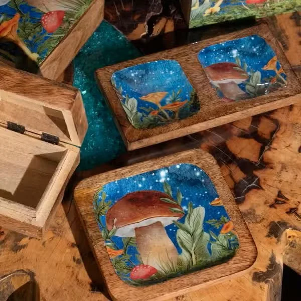 Home and Garden Gifts Bird Boxes and Bee & Insect Boxes Driftwood Chimes Felt Flowers Glass Candy Jars Glass Infuser Teapots Herbal Teapot Sets Little Felt Sheep Molten Glass on Wood Mushroom Design Enamelled Boxes and Trays Seagrass Bird Houses Tabletop Water Features Wooden Enamelled Mushroom Decorations Wooden Heart Decorations