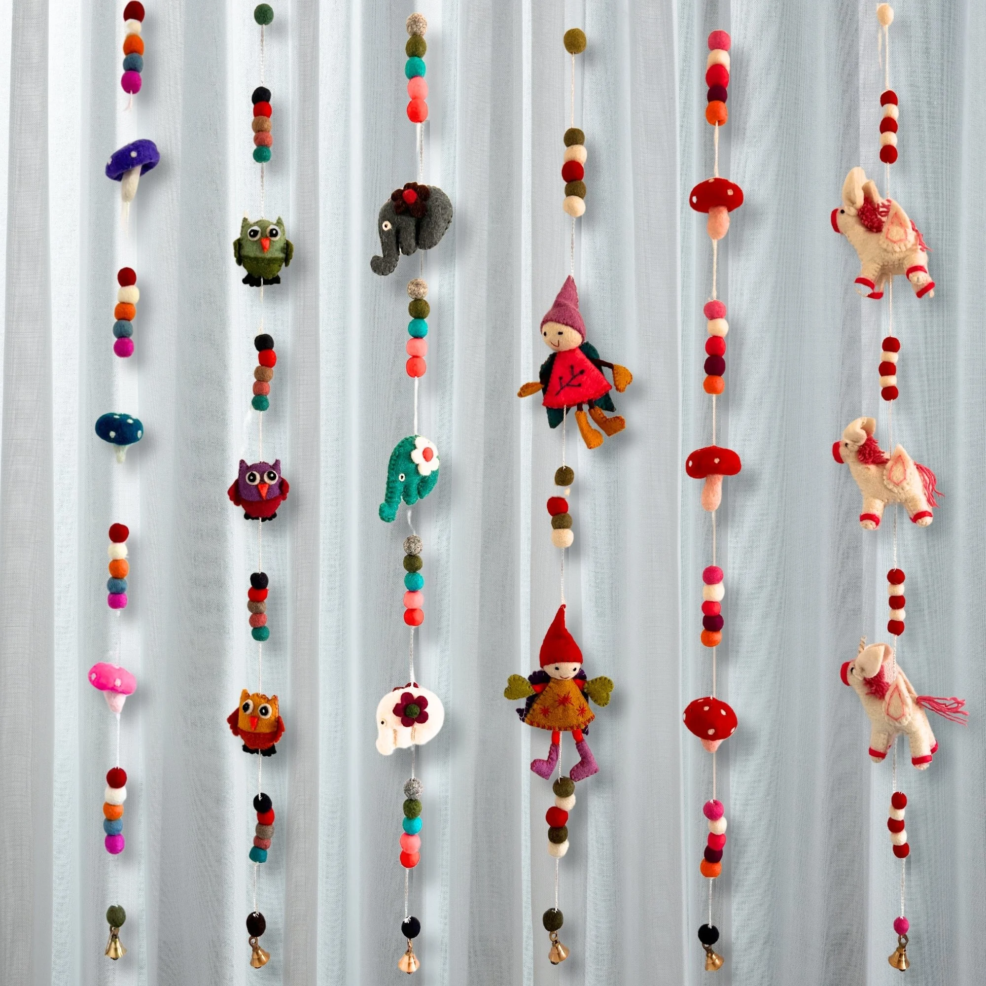 Add a whimsical touch to your home with these delightful Felt Wall Hangings. Handmade in Nepal from soft, colourful felt. These lightweight hangings feature beautiful designs such as unicorns, elephants, owls, and mushrooms, making them perfect for adding a unique decorative element to any room. Measuring approximately 110 cm in length, they are ideal for hanging in nurseries, living spaces, or even seasonal displays.
