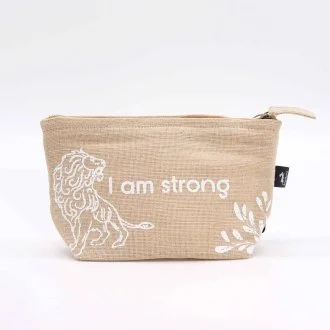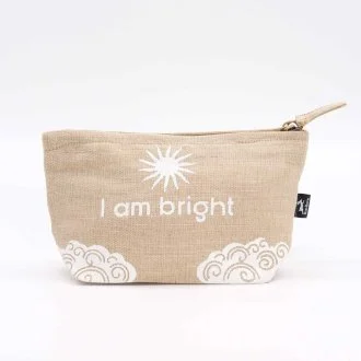 Discover the eco-friendly Hop Hare Pouch with uplifting quotes. These sustainable pouches are made from natural jute fibres, making them biodegradable and a stylish choice over regular bags. Each pouch displays a positive affirmation: "I am Strong," "I am Brave," "I am Magical," "I am Bright," "I am Powerful," and "I am Rare."