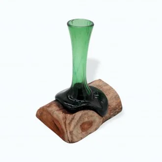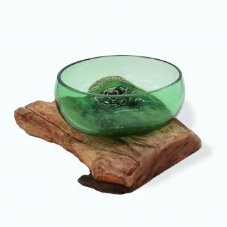 Molten Recycled Beer Bottles Glass on Wood is a unique and eco-friendly product that combines the beauty of green glass with the warmth of natural wood. The product is made by melting down used beer bottles and shaping them into a beautiful, organic form. The molten glass is then set on a base made of wood, which adds an earthy and rustic touch to the overall design.