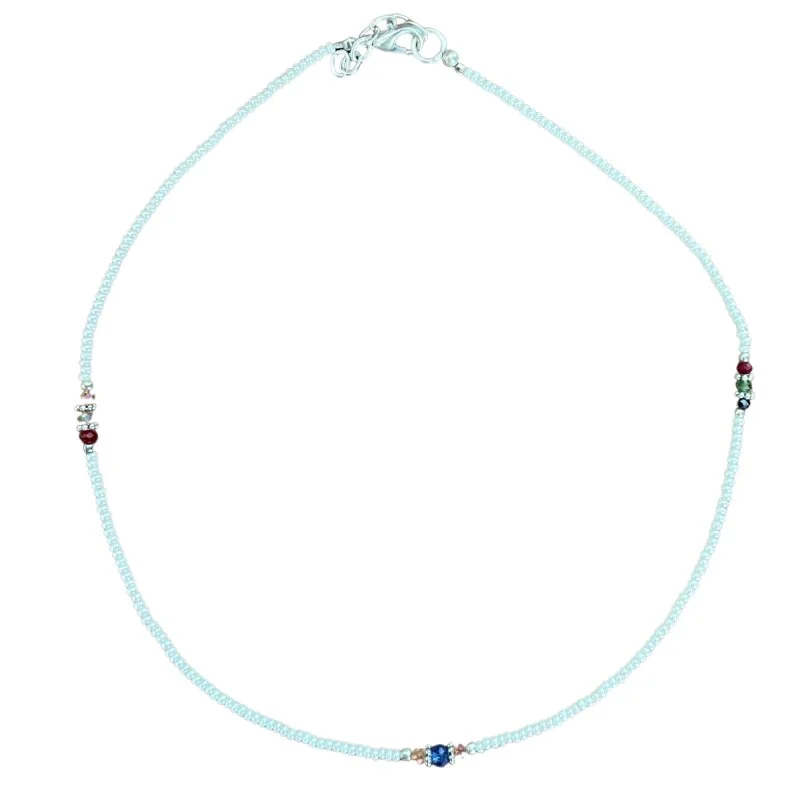 Single-line gem necklaces adorned with gemstone-like beads for a simple yet sophisticated aesthetic.