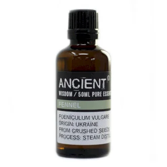 Fennel Essential Oil is extracted from the plant Foeniculum vulgare var. dulce, which is sweet fennel, also known as Roman fennel. It is extracted from the crushed seeds by steam distillation. The oil, like the seeds, is good for digestion as well as a host of other ailments. It is used in aromatherapy to treat oily skin, wrinkles, and obesity. It is said to boost courage, resolve, and strength.