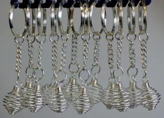 They are basically a spiral of metal that can be stretched slightly to put something inside such as small or large tumble stones.